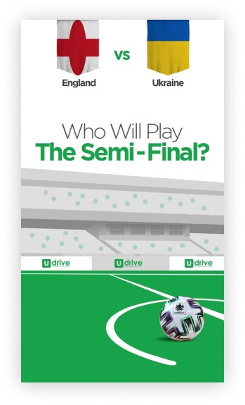 Deploying UEFA merchandise in Udrive fleet with a CTA to creatively share the Udrive campaign entries, as a reward, sending out tickets to the final screening to the most loved entries.